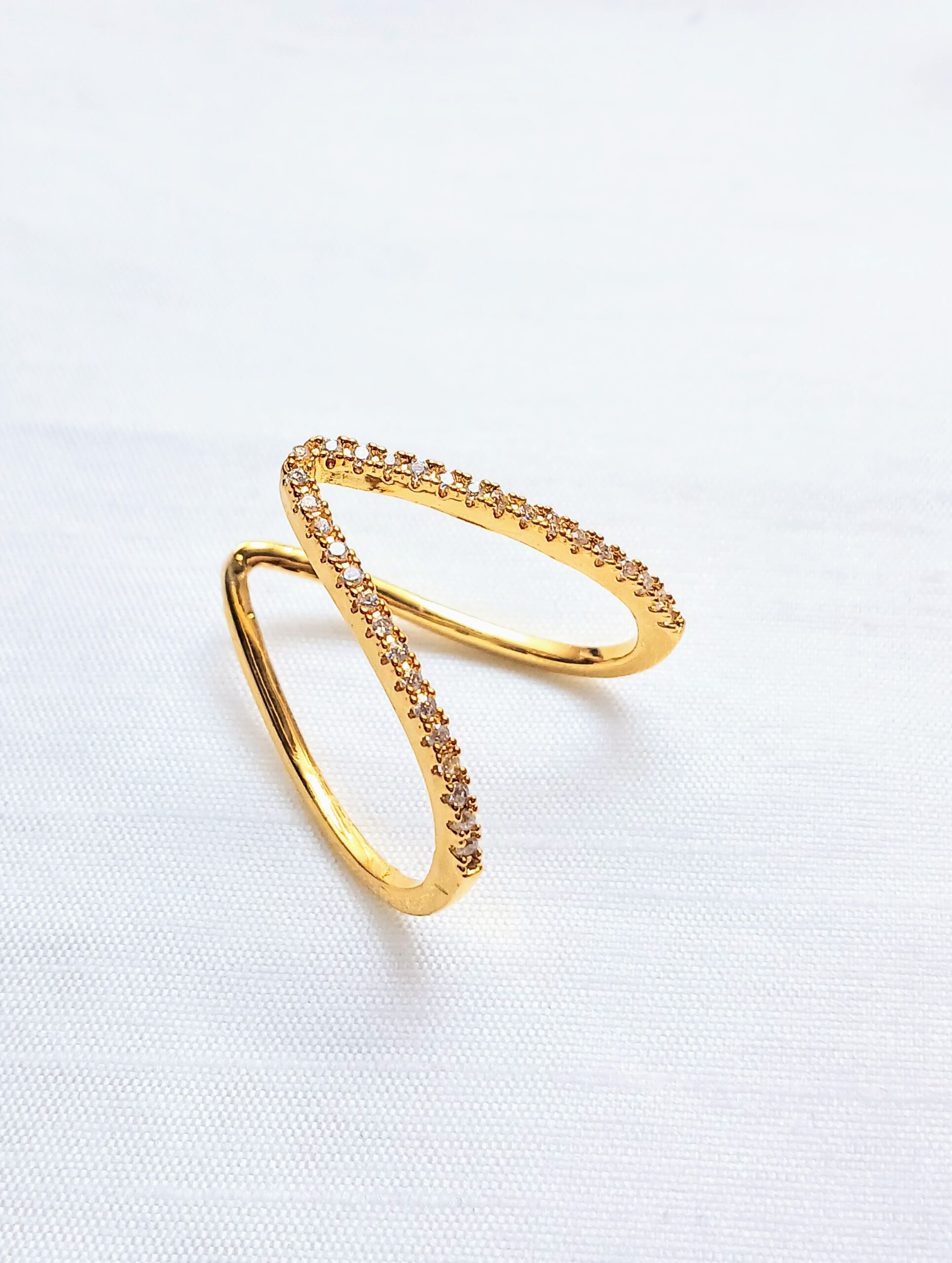 Featuring an adjustable open design, the ring offers a custom, comfortable fit across different finger sizes.